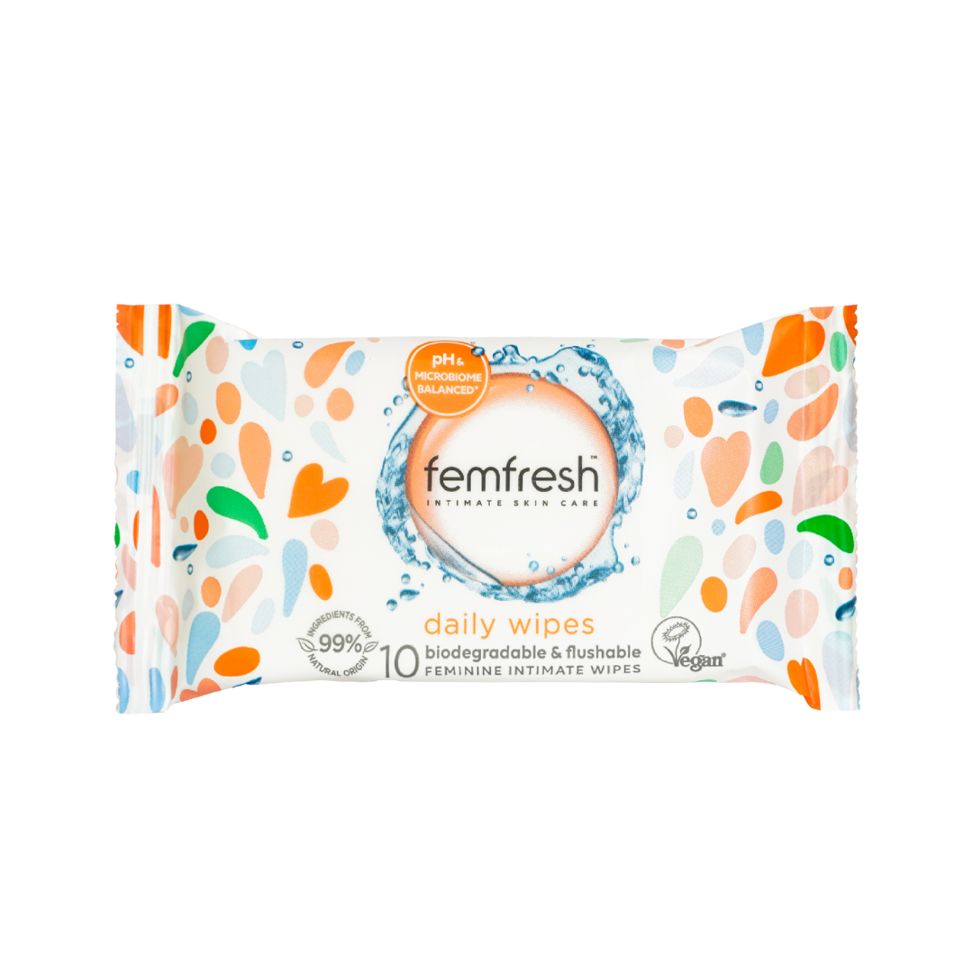 - Khăn ướt vệ sinh vùng kín hằng ngày cao cấp Femfresh Intimate Skin Care Daily Wipes là sản phẩm vệ sinh chuyên dụng hàng ngày dành cho vùng kín giúp làm sạch, khử mùi hôi, hỗ trợ kháng khuẩn, kháng viêm đồng thời nuôi dưỡng làn da vùng kín,…