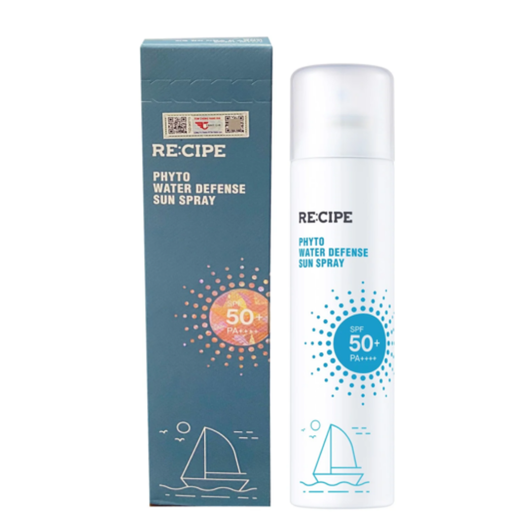 Xịt Chống Nắng Bảo Vệ Da, Dưỡng Ẩm Recipe Phyto Water Defense Sun Spray SPF50+ PA++++ là xịt chống nắng thuộc thương hiệu RE:CIPE. Với chỉ số chống nắng cao cùng công nghệ SOLAR CLEAR giúp bảo vệ da tối ưu trước ánh nắng mặt trời. Đồng thời công thức còn bổ sung tới 69 loại tinh chất thiên nhiên giúp cấp ẩm, hỗ trợ dưỡng sáng và chăm sóc da.