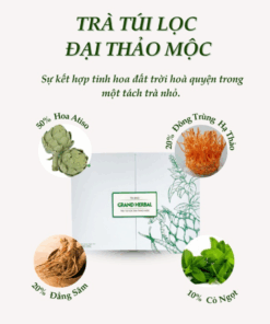 Mở đầu là Trà Đại Thảo Mộc – sự kết hợp hoàn hảo cho sức khỏe toàn diện, tựa như làn gió dịu mát, giúp thanh lọc, giải nhiệt và mang lại cảm giác nhẹ nhàng, thư thái. Mỗi ngụm trà là một khoảnh khắc để bạn lắng đọng và cảm nhận sự an yên.