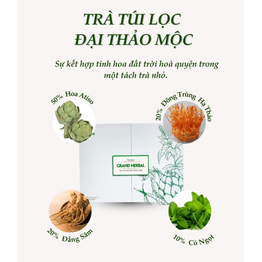 - Trà Đại Thảo Mộc túi lọc Ngọc Duy, với công thức phối trộn đặc biệt từ Atisô, Đẳng sâm, Đông trùng hạ thảo và Cỏ ngọt, là món quà tinh túy từ thiên nhiên, giúp bạn chăm sóc sức khỏe một cách chủ động, nhẹ nhàng và bền vững mỗi ngày.